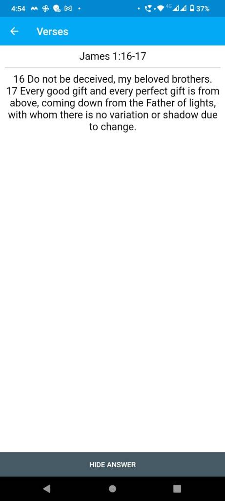 This is an additional reason that I really like Anki. Like I said, last year my son was born. That knocked my Anki habit off for a good while! I didn’t learn any new stuff, or really review much at all, for about a month; and it took me about six months to get properly back on the Scripture memorisation train. Now, if I was learning Scripture without an app and had a six-month break, it would be back to the drawing board. I wouldn’t be able to remember what I knew and what I didn’t, and would just have to go over everything.